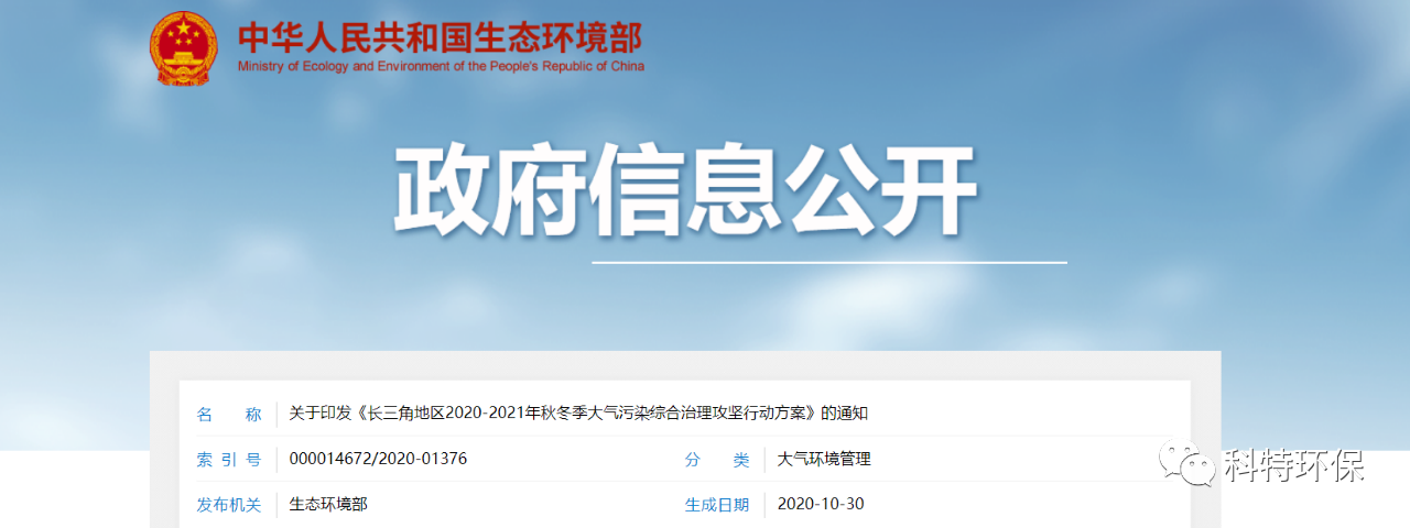 生態(tài)環(huán)境部、國(guó)家發(fā)展和改革委員會(huì)、工業(yè)和信息化部等10部門與上海、江蘇、浙江、安徽等4?。ㄊ校┤嗣裾?lián)合印發(fā)《長(zhǎng)三角地區(qū)2020-2021年秋冬季大氣污染綜合治理攻堅(jiān)行動(dòng)方案》(以下簡(jiǎn)稱《行動(dòng)方案》)